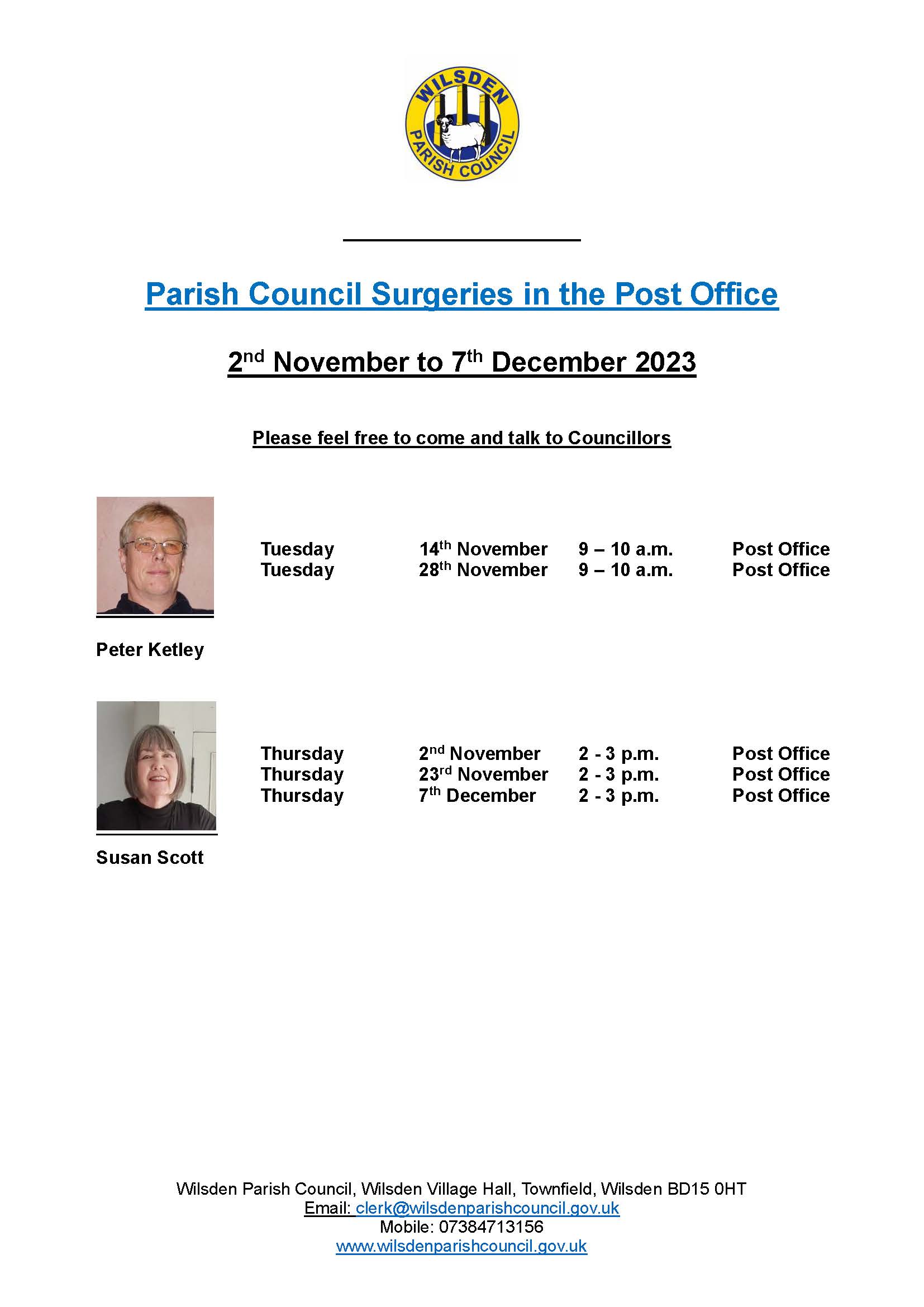 Parish Councillor Surgeries for November in the Community Post Office